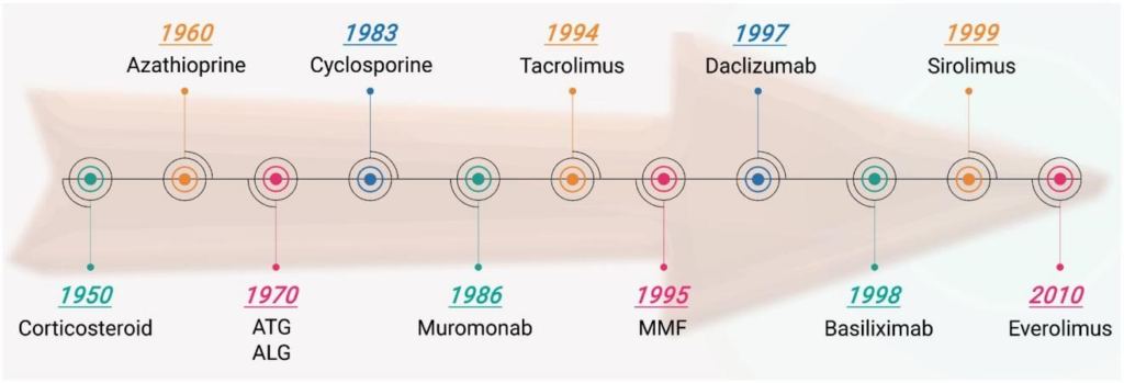 Figure 1. Timeline of transplant-related immunosuppressant drugs.